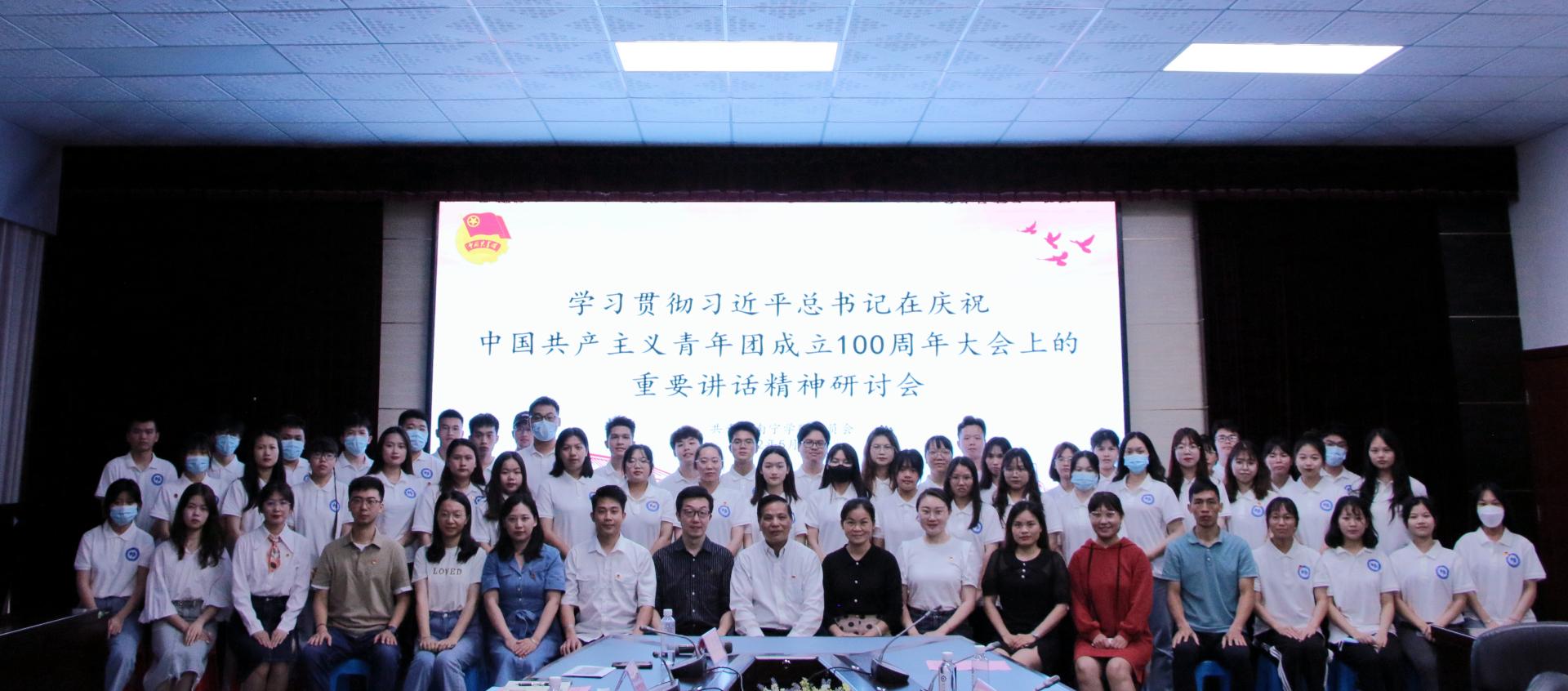 坚定不移跟党走,为党和人民奋斗,是共青团的初心使命。此次研讨会全面、深刻地学习领会了习近平总书记在庆祝中国共产主义青年团成立100周年庆祝大会上的重要讲话精神,是落实立德树人根本任务重要环节之一。学校将以此次研讨会为契机,持续开展习近平总书记重要讲话精神系列学习活动,团结带领广大青年奋发图强,坚定信念听党话、感党恩、跟党走,为推动学校高质量内涵式发展凝聚青年磅礴力量,以优异成绩迎接党的二十大胜利召开。(校团委供稿 图/南宁学院青年传媒中心 文/庞洁)