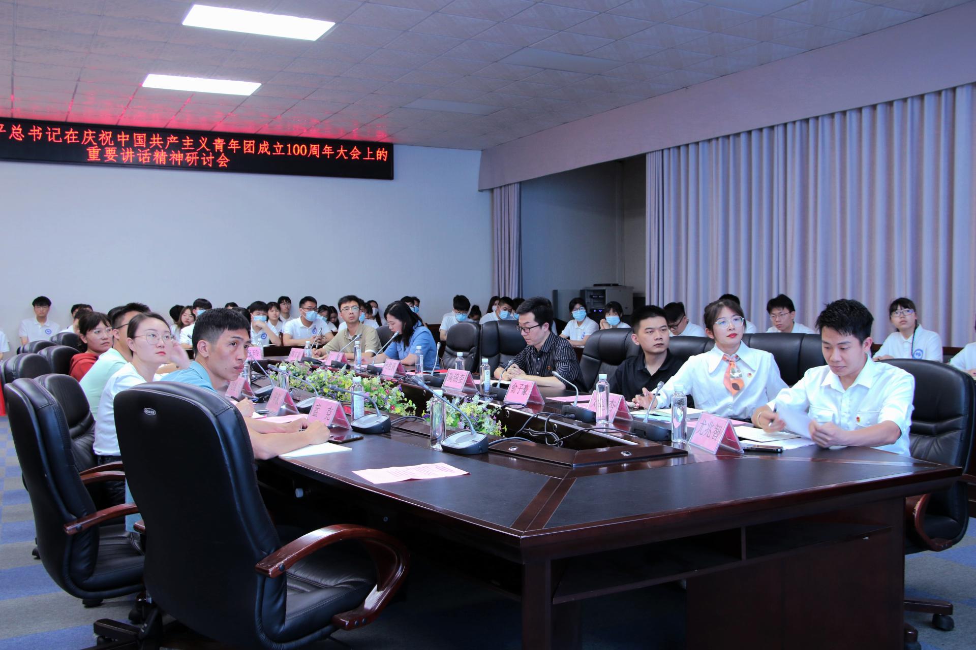 为深入学习贯彻习近平总书记在庆祝中国共产主义青年团成立100周年庆祝大会上的重要讲话精神,激励广大团员青年在实现中华民族伟大复兴中国梦的新征程上奋勇前进,5月24日下午,共青团南宁学院委员会在活动中心302会议室召开了学习贯彻习近平总书记在庆祝中国共产主义青年团成立100周年大会上的重要讲话精神研讨会。校党委宣传部副部长高锦奎,马克思主义学院韦胜强教授、校团委青年教师代表,学工处思政科教师代表,各二级学院团委书记,青年学生代表以及“青马工程”培训班全体学员参加研讨。研讨会由校团委副书记尤兆智主持。