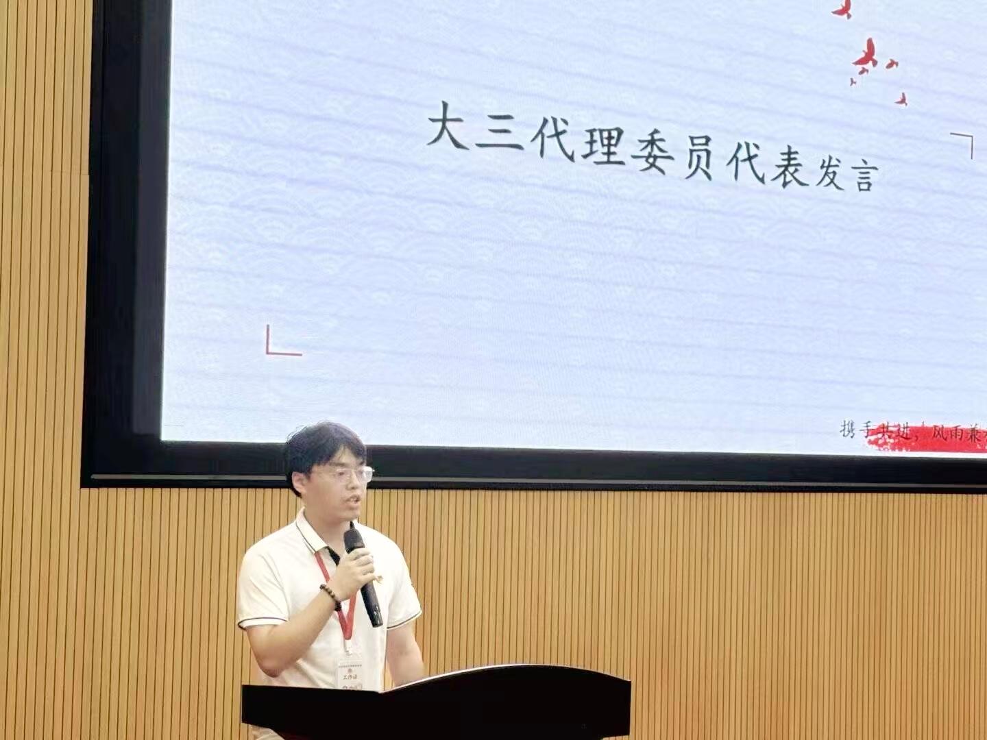 薪火相传,声声入心。仪式上,各年级学生团干代表依次发言,从“第一次戴上团徽”的兴奋,到“带领团队冲锋”的收获,再到“把经验传下去”的担当,勾勒出一条清晰而炽热的成长轨迹。尤兆智老师寄语全体团干:“让团徽成为学习生活的最高标尺,把个人‘小目标’写进民族复兴‘大蓝图’。”