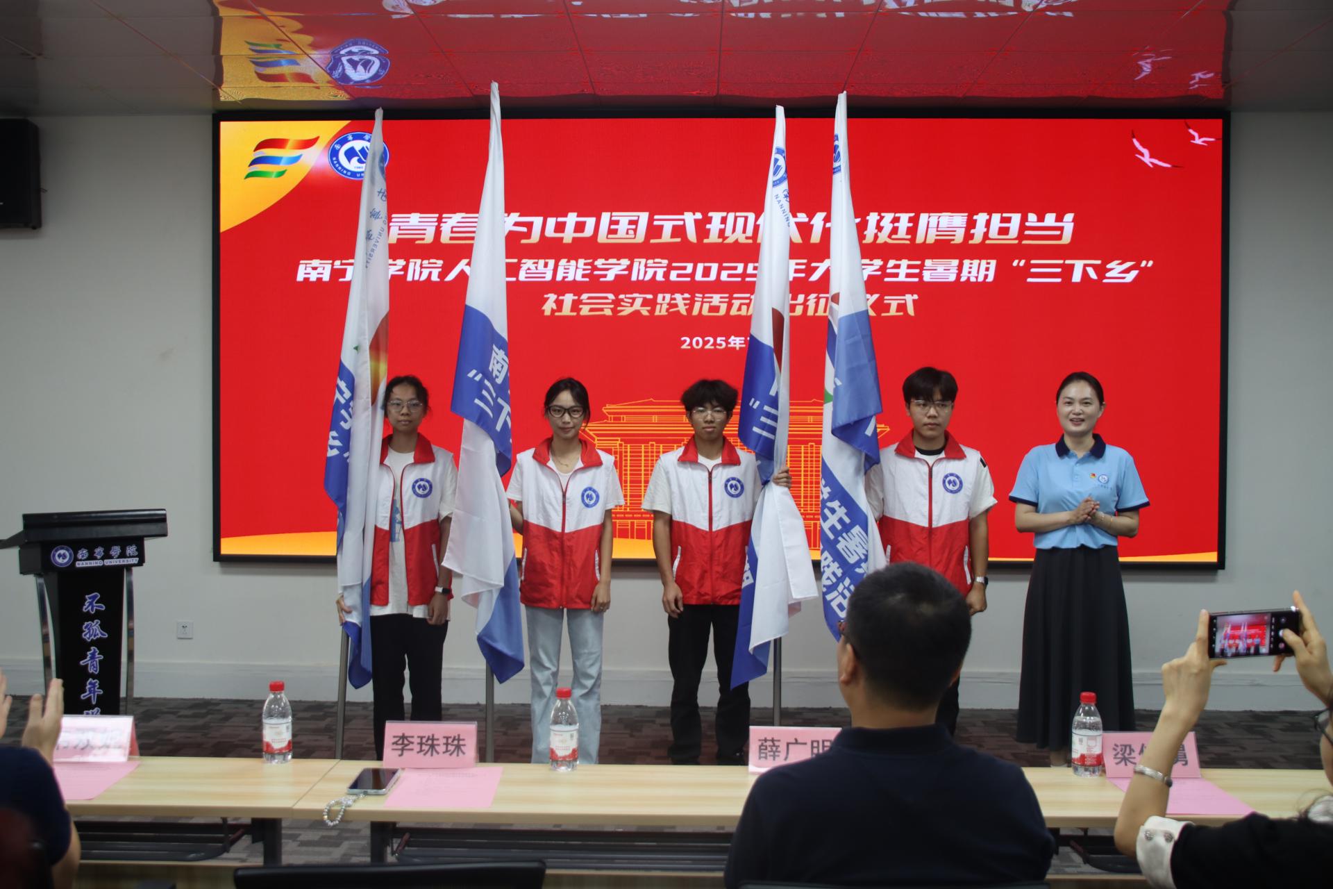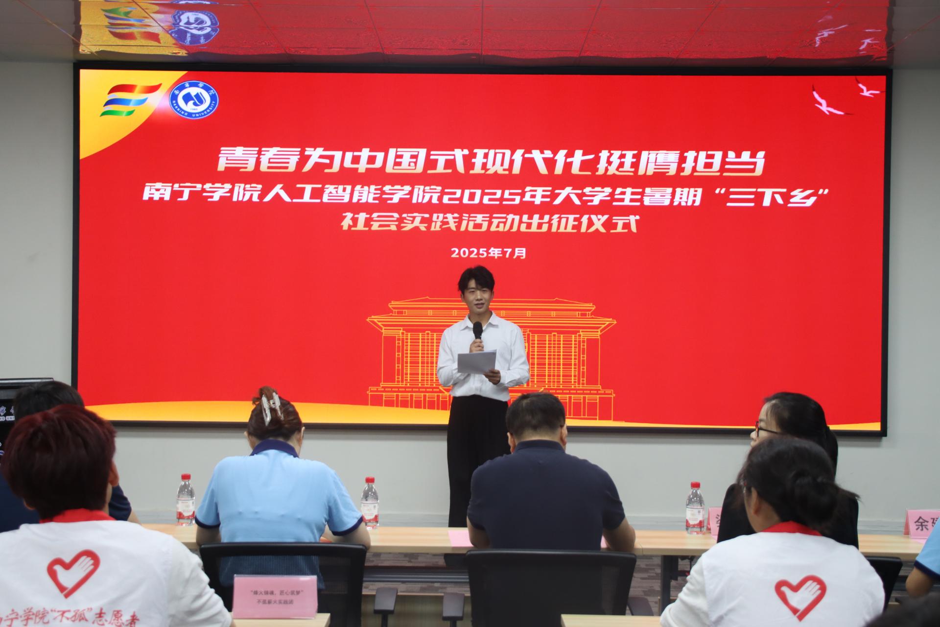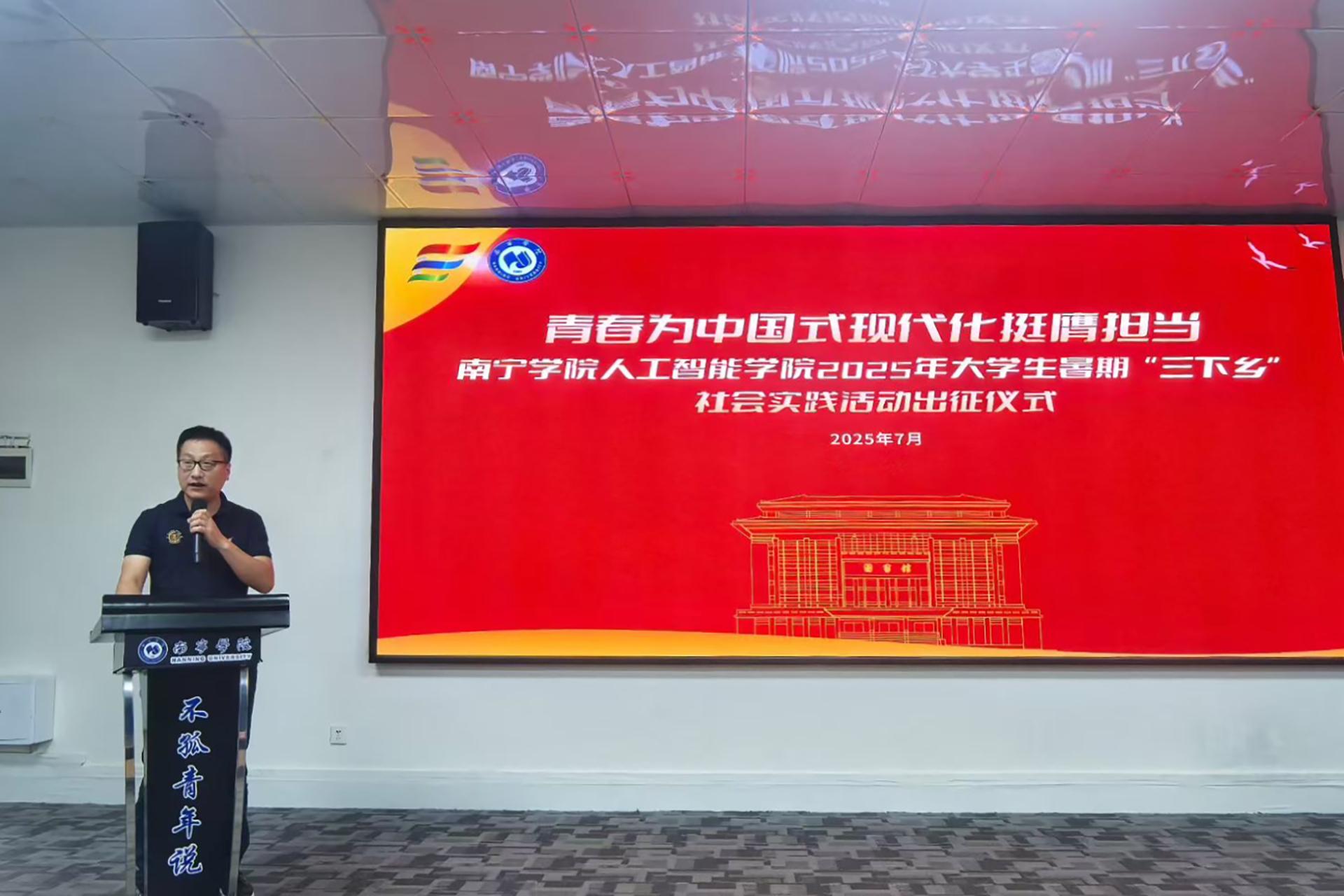 为深入学习贯彻习近平总书记关于青年工作的重要思想,引导广大青年学生在基层实践中厚植家国情怀、锤炼过硬本领,以青春之力服务乡村振兴和家乡发展,7月4日上午,人工智能学院2025年大学生暑期“三下乡”社会实践活动出征仪式在活动中心202室隆重举行。学院副院长薛广明、党委副书记李珠珠出席仪式,学院四支“三下乡”社会实践团队带队老师及志愿者共60余人参加仪式。出征仪式由杨东明同学主持。