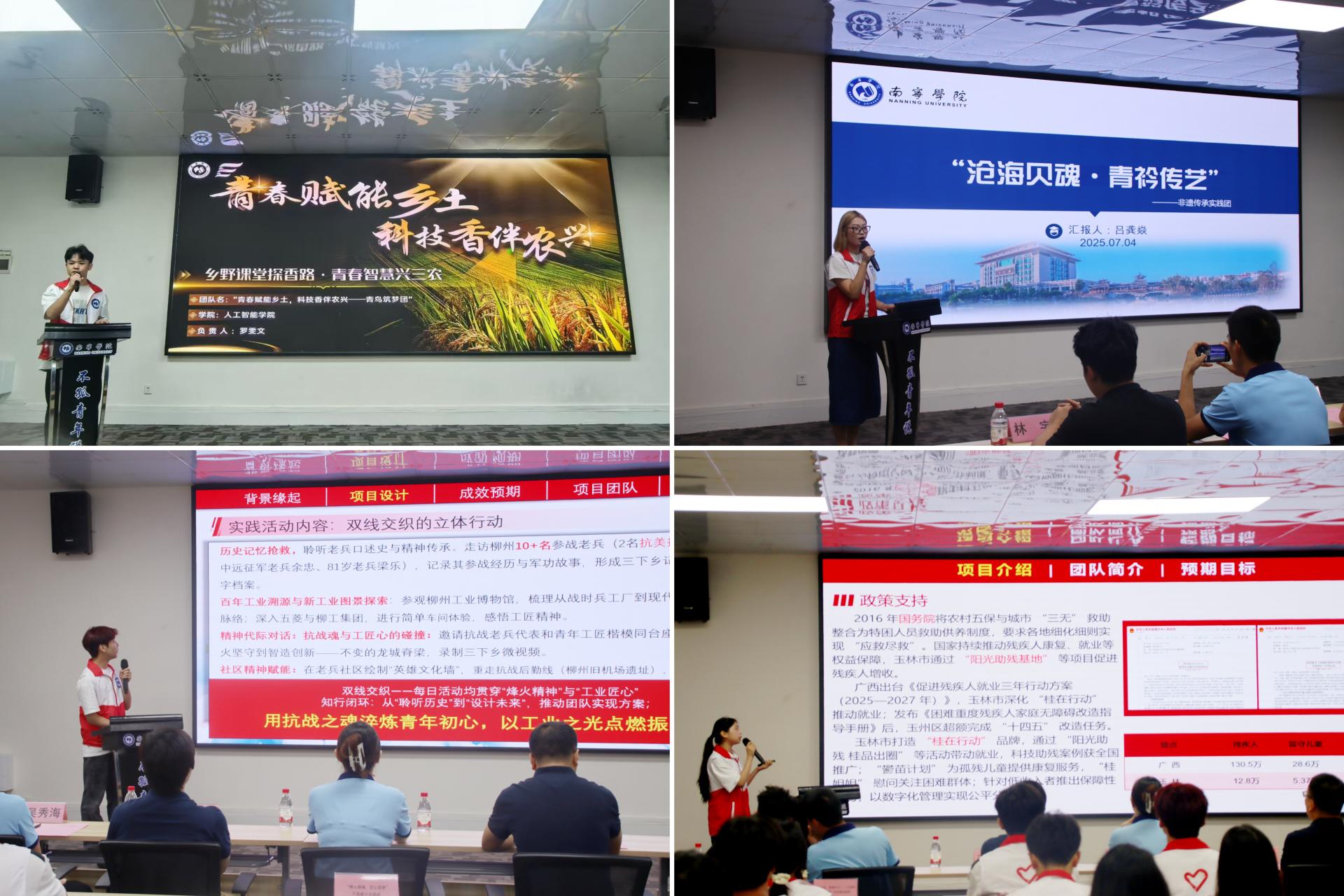 仪式启动阶段,四支社会实践团队紧扣乡村振兴、科技助农、文化传承、教育关爱等领域实践方向,深度融合学院专业特色,依次进行实践方案展示汇报。