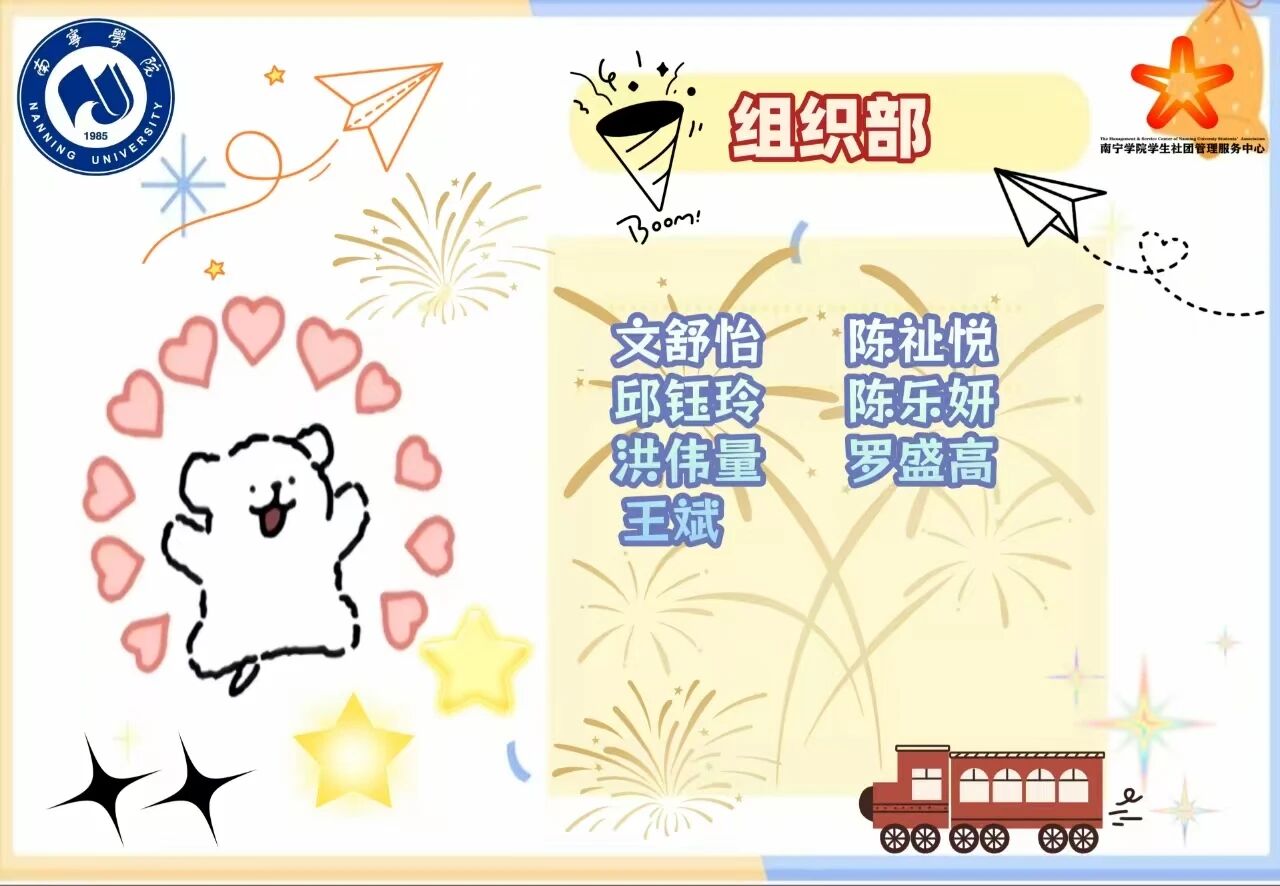 组织部:文舒怡、陈祉悦、邱钰玲、陈乐妍、洪伟量、罗盛高、王斌