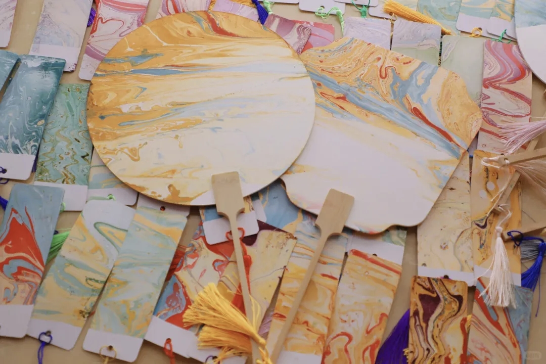 (2)参与者可以任意在扇子上创作。可以自行设计风格,也可以独立搭配色彩,彰显自己的特色,用大漆调配出自己的色彩。