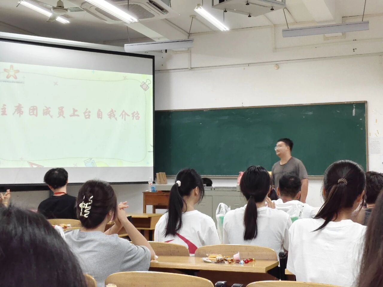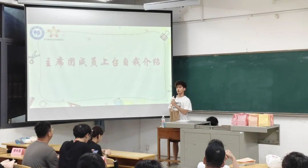 本次新生见面会的主持人由文体部副部长苏光昱担任,主持人介绍到场的主席团成员。