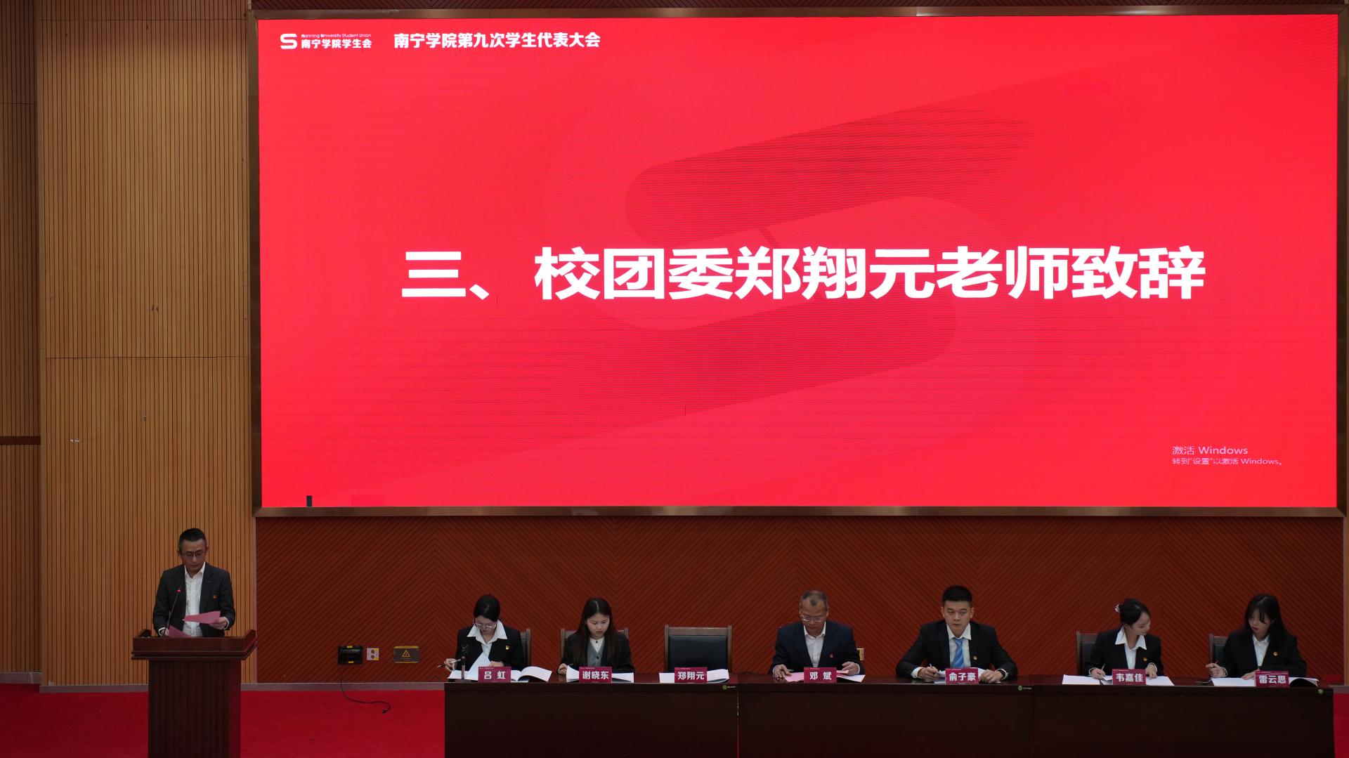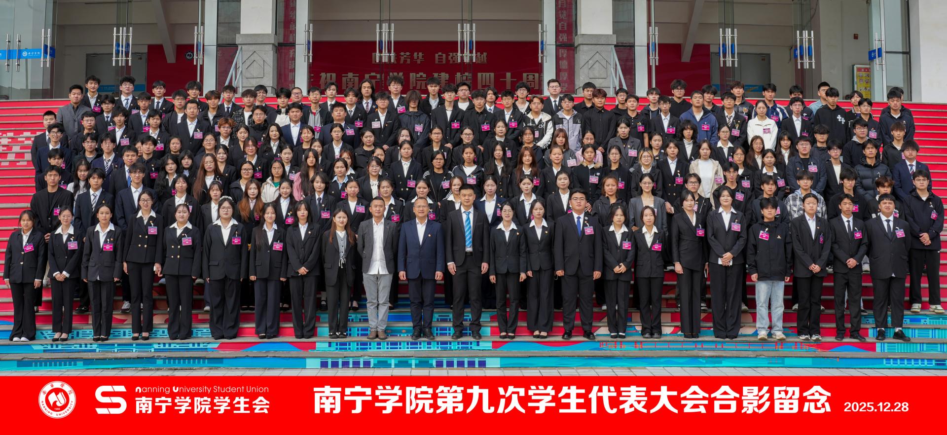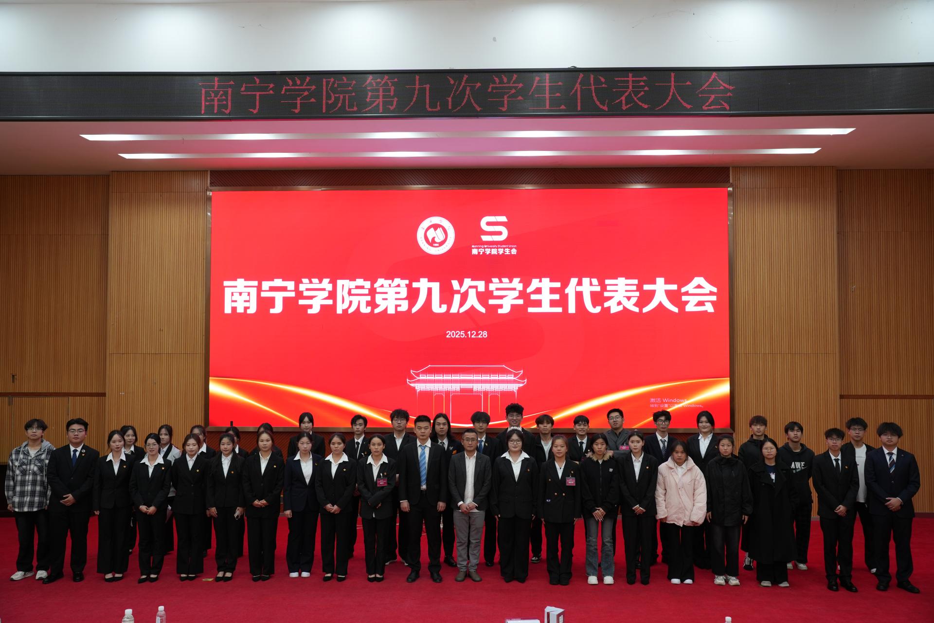 2025年12月28日,南宁学院第九次学生代表大会在学生活动中心隆重召开。来自全校10个学院的225名正式代表,代表全校2.25万余名学子齐聚一堂,履行民主权利,共谋发展大计。校团委书记邓斌,校团委办公室郑翔元、俞子豪、谢晓东等老师出席开幕式。