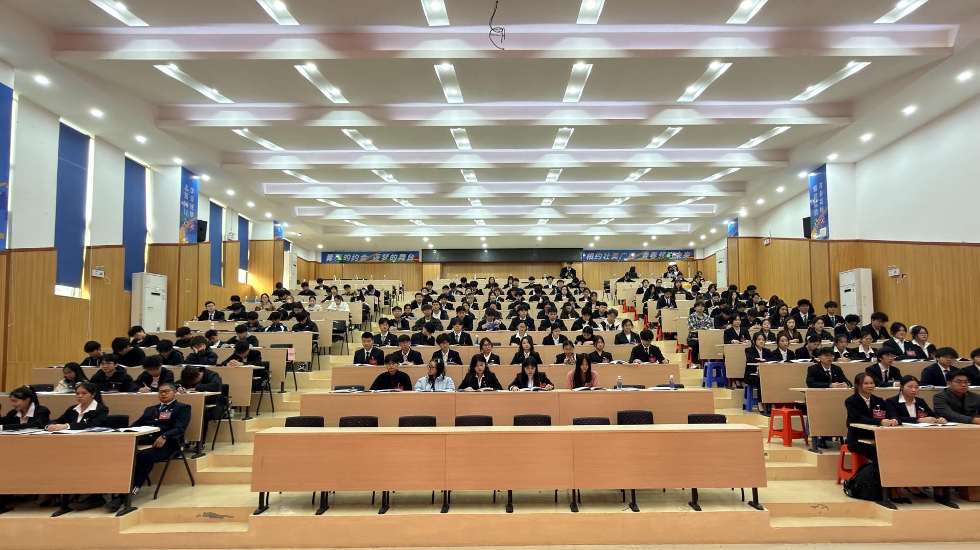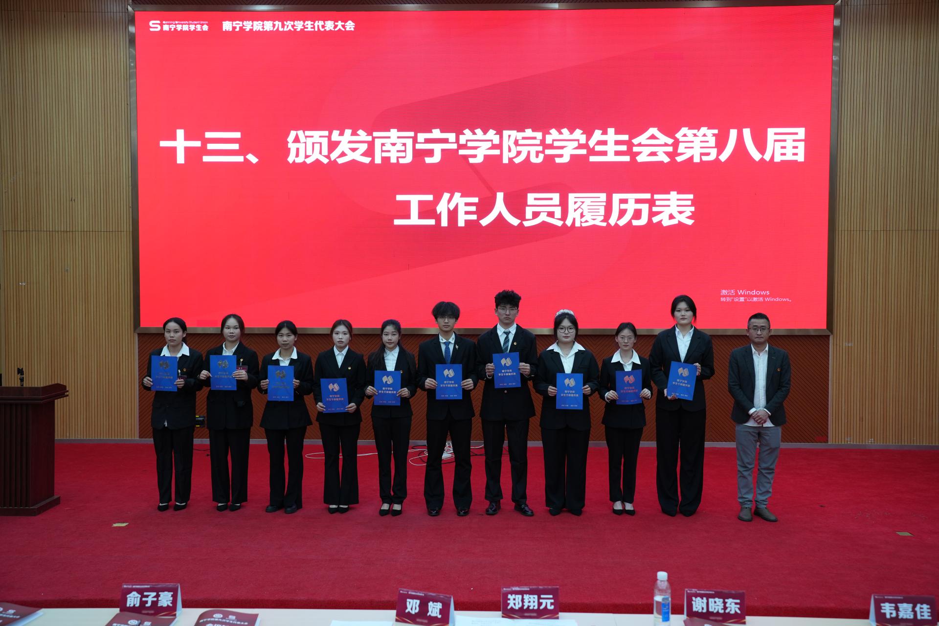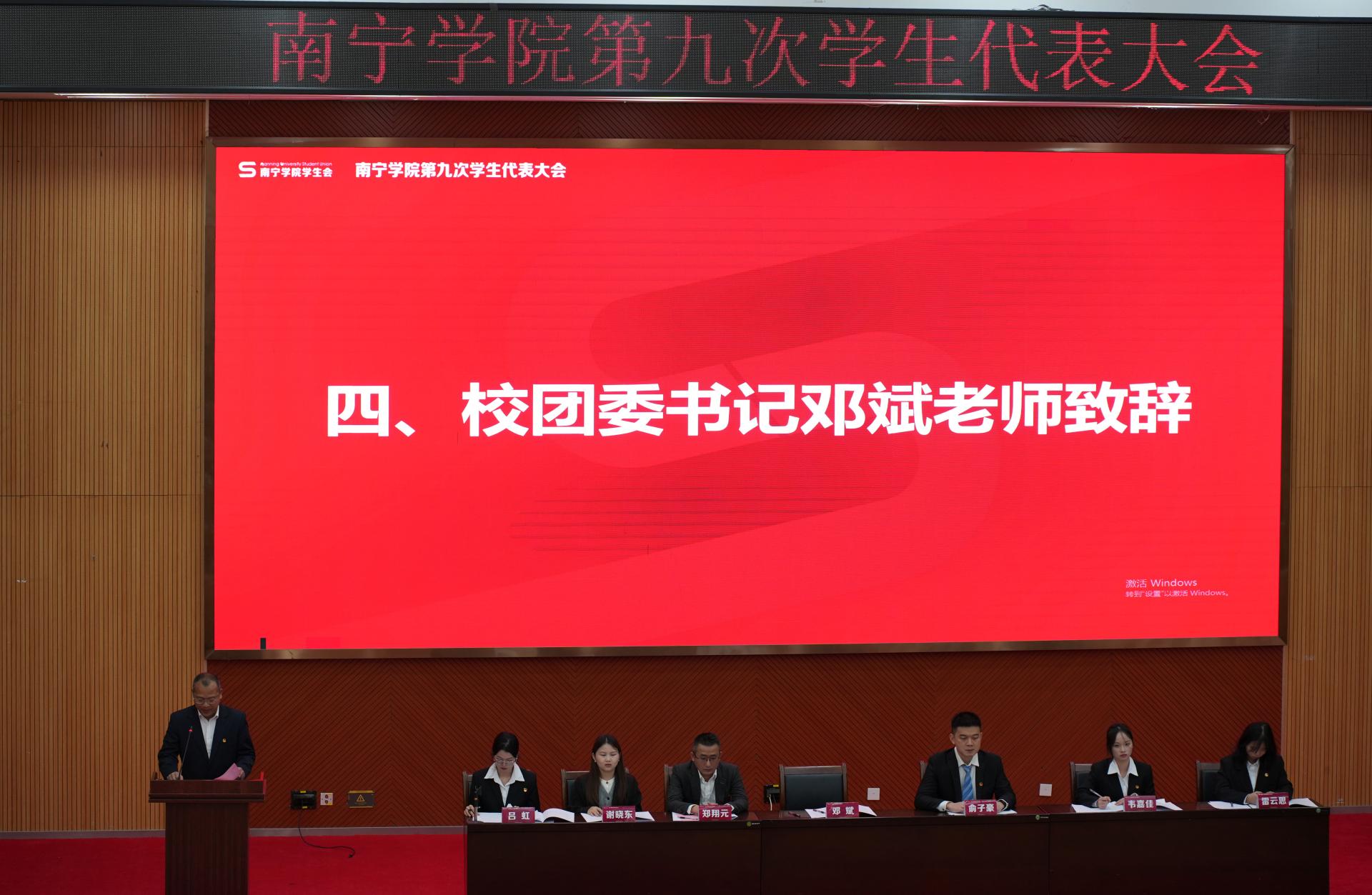 2025年12月28日,南宁学院第九次学生代表大会在学生活动中心隆重召开。来自全校10个学院的225名正式代表,代表全校2.25万余名学子齐聚一堂,履行民主权利,共谋发展大计。校团委书记邓斌,校团委办公室郑翔元、俞子豪、谢晓东等老师出席开幕式。