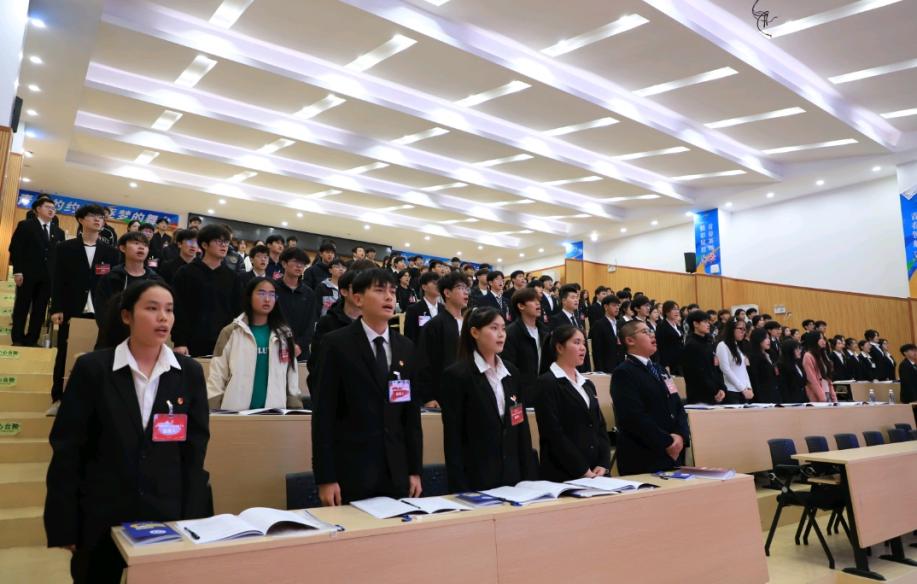校团委书记邓斌老师、校团委负责人郑翔元老师,俞子豪老师,谢晓东老师出席开幕式。会议开始前,全体师生共唱国歌。