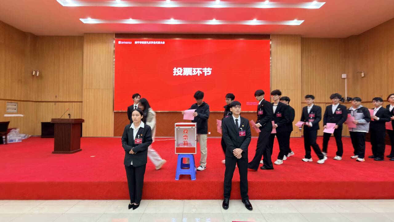 会议严格履行民主程序,以无记名投票方式,选举产生了南宁学院第九届学生会主席团成员及学生委员会委员。第九届学生委员会委员代表在发言中表示,将恪守“全心全意为同学服务”的根本宗旨,紧密围绕同学需求,务实推进各项工作,不负信任与期望。