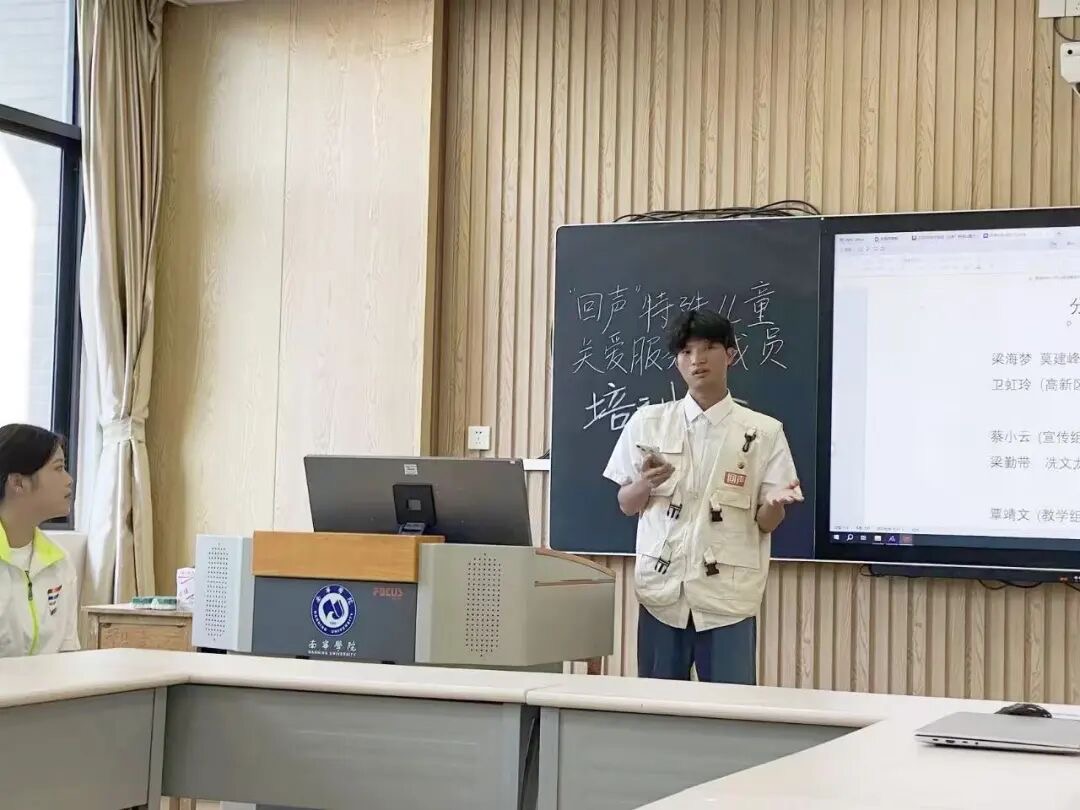 2025年7月4日,南宁学院“回声”特殊儿童关爱服务团在敷文园A101教室召开三下乡暑期社会实践动员暨培训会,正式启动“爱无障碍,因有回声”关爱特殊儿童主题服务活动。本次服务活动来自多个学院志愿者的积极参与,展现出新时代大学生投身公益、服务社会的青春担当。