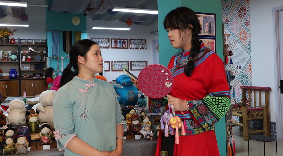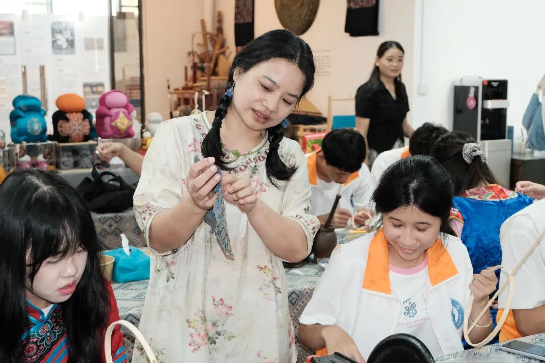 7月7日下午,为更好的了解民族文化以便更好的感悟民族团结的魅力,“邕护同心”民族团结实践团前往伯皇壮族非遗体验中心体验壮族传统非遗工艺。