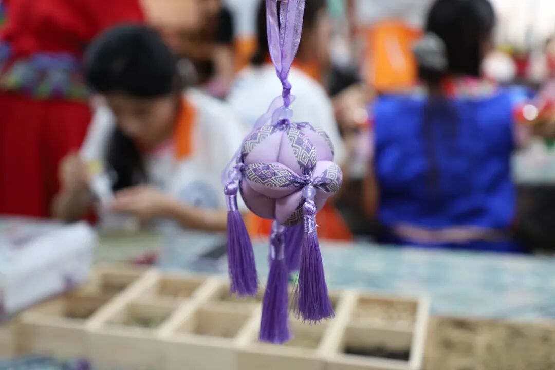 绣球制作制作之前,非遗老师就绣球的来源、传说以及不同的寓意进行讲解,并且手把手教成员们如何简易制作。整个课程中成员们与老师积极互动,主动提问,老师悉心回答并上手指导。