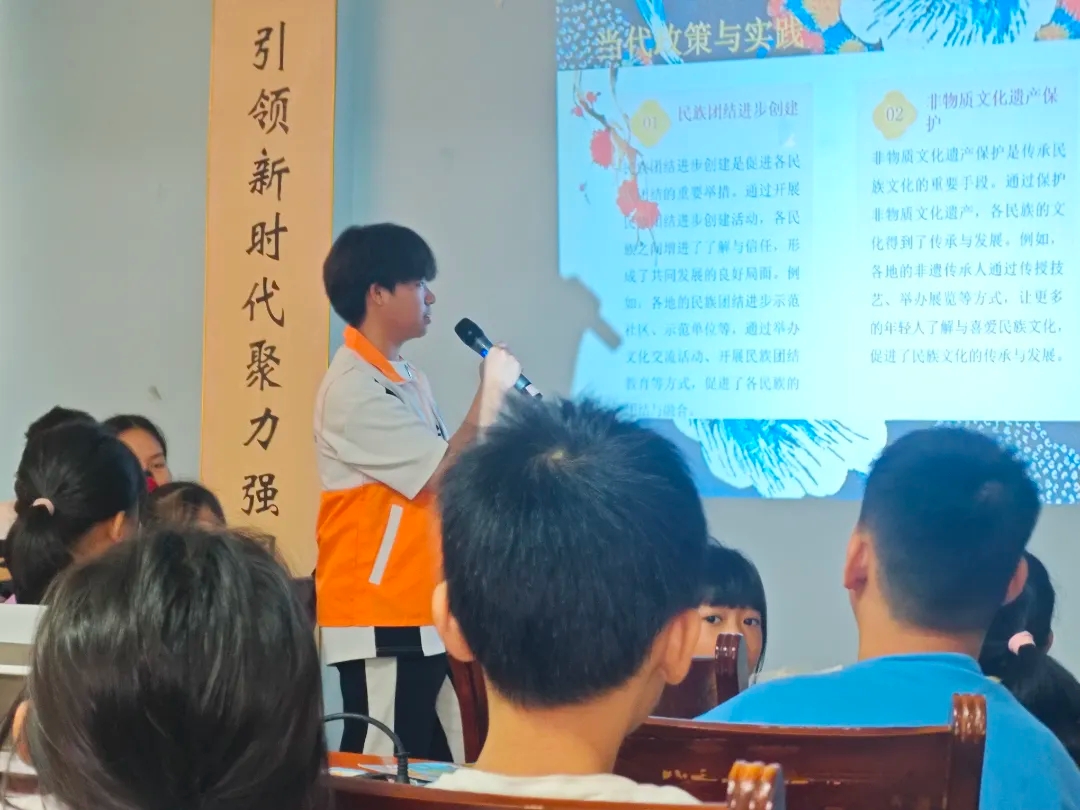 舞蹈组的小朋友们在实践团成员的悉心指导下,反复练习着精心编排的民族特色舞蹈动作,力求步伐整齐、姿态优美,展现民族舞蹈的韵律之美。歌唱组则专注于民族歌谣的演唱,从音准、节奏到情感表达,不断打磨,稚嫩的歌声传递着对民族文化的热爱。朗诵组的小朋友们则认真练习着台词,字正腔圆,声情并茂,为讲述民族故事做着最后的准备。