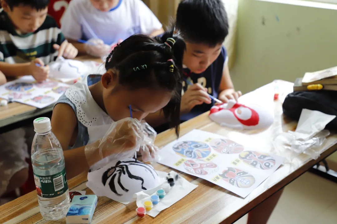 7月11日上午,实践团延续文化传承的热情,开展了《小小画笔传非遗,彩绘脸谱品国粹》主题教育活动。成员徐小媛、李欣玲首先为孩子们带来了一场生动的脸谱文化小课堂,深入浅出地介绍了脸谱作为国粹的艺术价值、不同颜色与图案的象征意义及其在传统戏曲中的重要地位。在小朋友们对脸谱文化有了初步认知后,手工课随即展开。孩子们领到空白脸谱模具,对照着传统脸谱图片,化身小小艺术家,运用画笔和色彩,全神贯注地进行创作。他们或模仿经典,或融入自己的理解,一笔一画勾勒涂抹,在亲手实践中更深刻地品味国粹艺术的精妙与魅力。